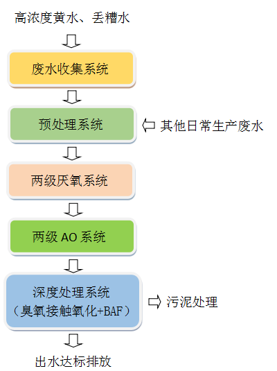 02 收集的黃水和丟糟水與其他日常工業(yè)廢水按比例混合降低負(fù)荷。